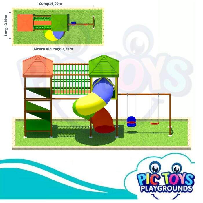 O Brinquedão kid Play PicToys_025 é ideal para ser instalado em área externa, playground compacto e com muitas atividades. As cores podem variar de acordo com seu gosto