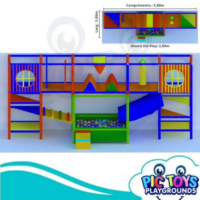 O Brinquedão kid Play PicToys_009 é ideal para ser instalado em área interna, projeto ideal para crianças pequenas e maiores também, além de contar com 1 super piscina de bolinhas que trará mais emoção a brincadeira.