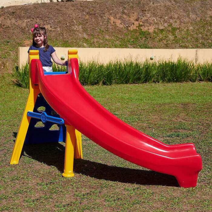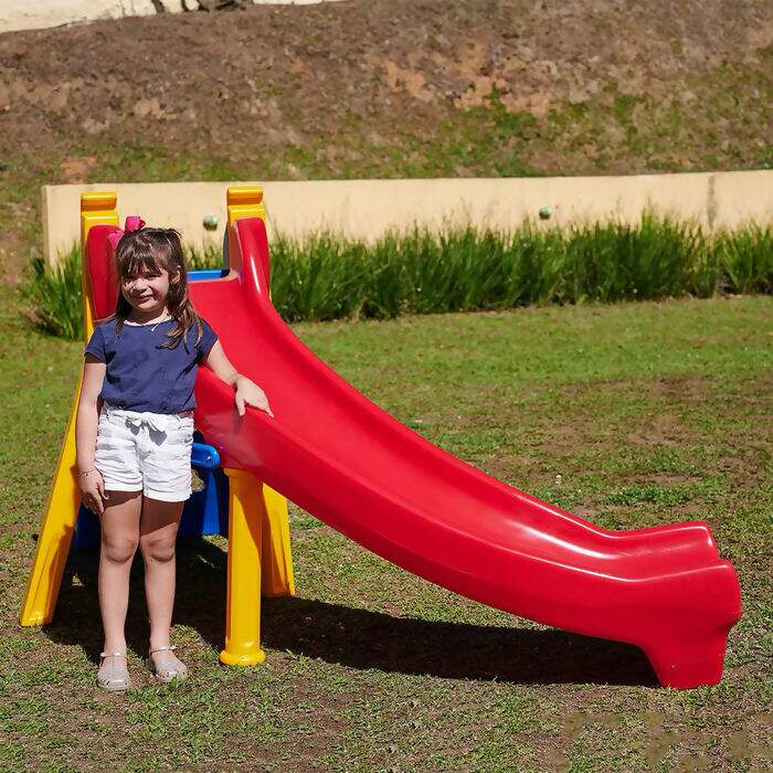 Para motivar ainda mais o exercício e consequentemente melhorar a saúde, o escorregador infantil possui encaixes que podem unir o escorregador a uma piscina ou caixa de areia, assim a brincadeira fica mais expansiva e muito mais legal.