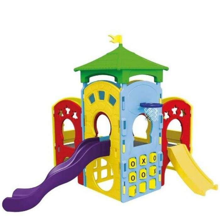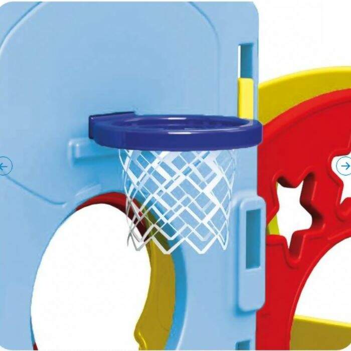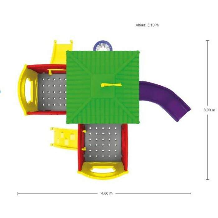 O Playground Modular Future da Xalingo é resistente fácil de limpar. Vem com múltiplas atividades como parede de escalada, tobogã, escorrega pequeno, jogo da velha gigante, tabela de basquete com bola, etc