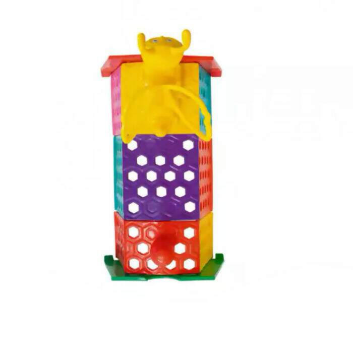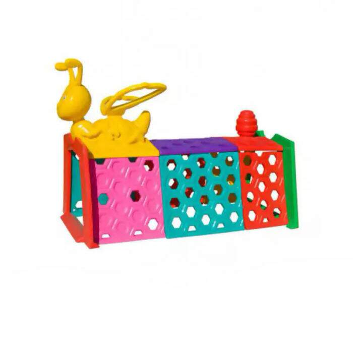 O Túnel Sweet Bee Mundo Azul possui peças em alto relevo com laterais vazadas para visualização e ventilação. Também tem uma colméia e uma abelha com antenas e asas móveis.